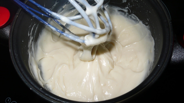Removemos bien con una barilla hasta que cuaje y retiramos del fuego, debe quedarnos este aspecto